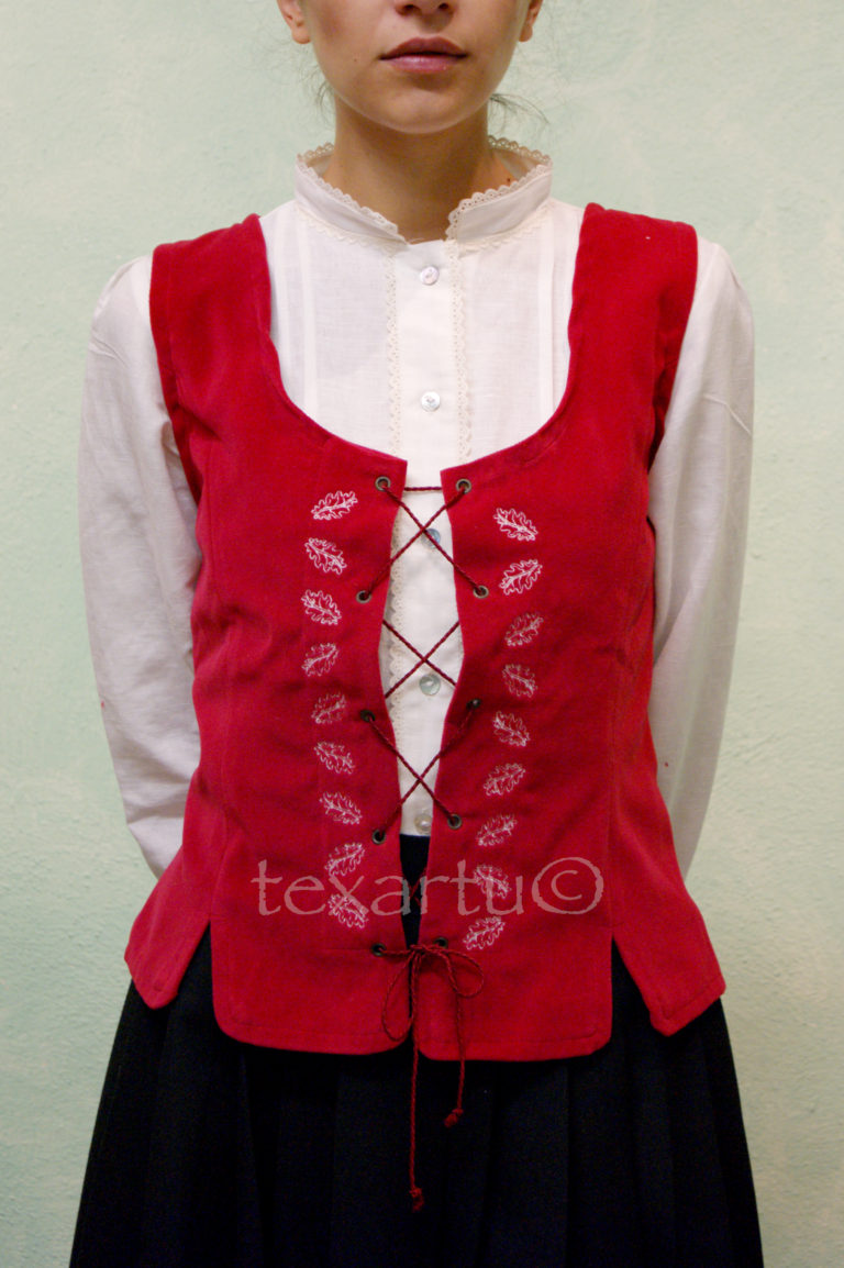 Detalles bordados en laterales de abertura, atado con cordones.